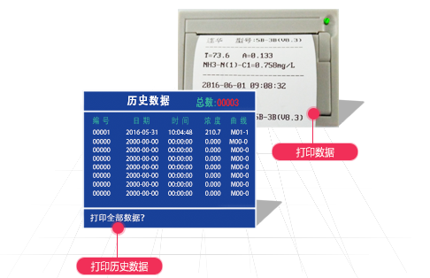 儀器內置打印機,可打印當前數據和所有存儲的歷史數據